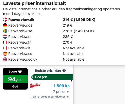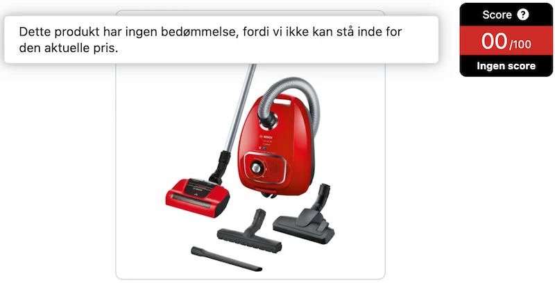 - Ikke-gunstig pris: Vi beregner en “fair pris” for hvert produkt. Hvis et produkt afviger markant fra denne pris, mister det sin score. Det skyldes, at vi ikke ønsker at fremhæve produkter, hvor prisen er sat kunstigt højt af forhandleren.